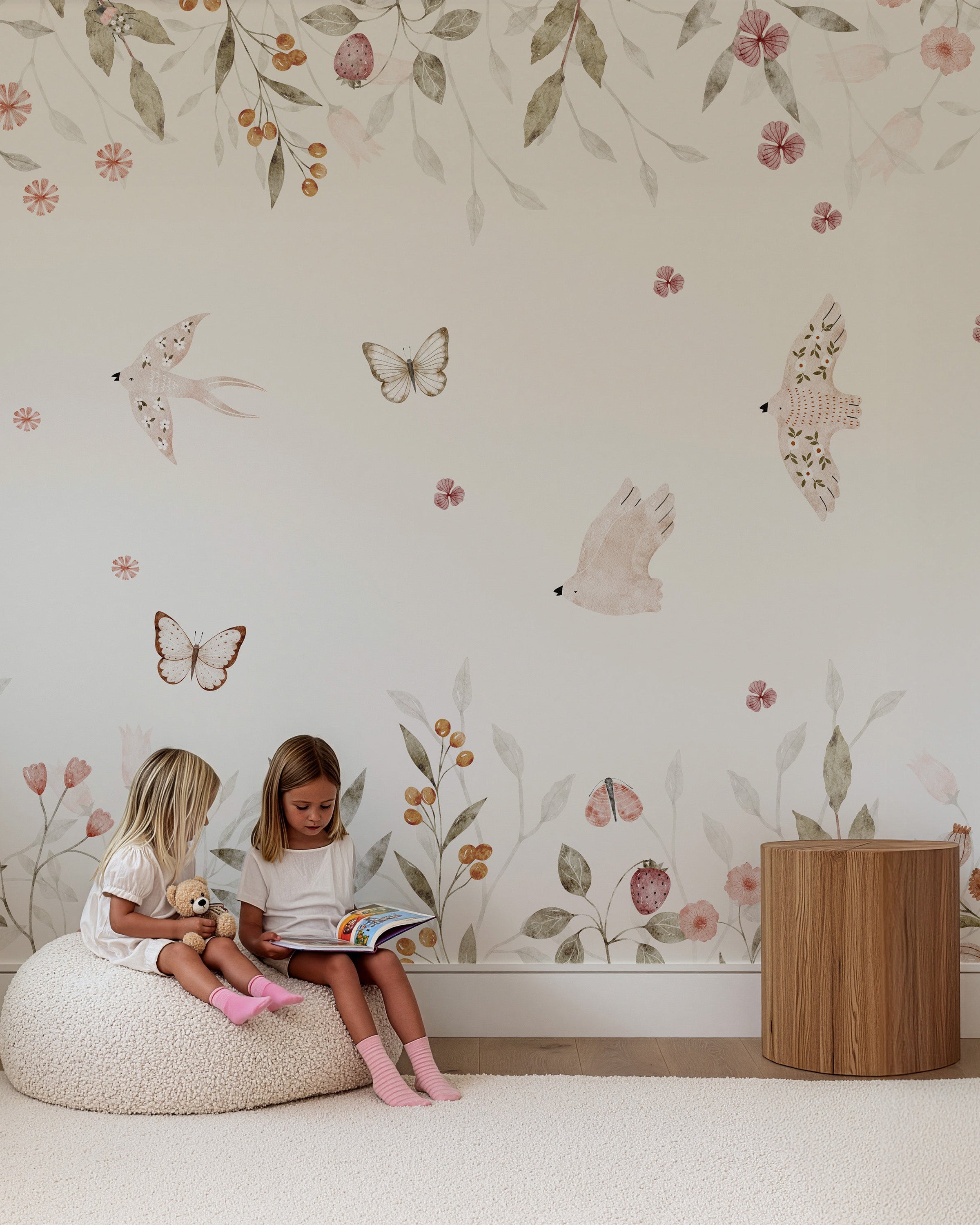 Ontdek collagebehang voor de kinderkamer met dromerige thema’s. Van bloemen en jungle-dieren tot wolken en sterren.