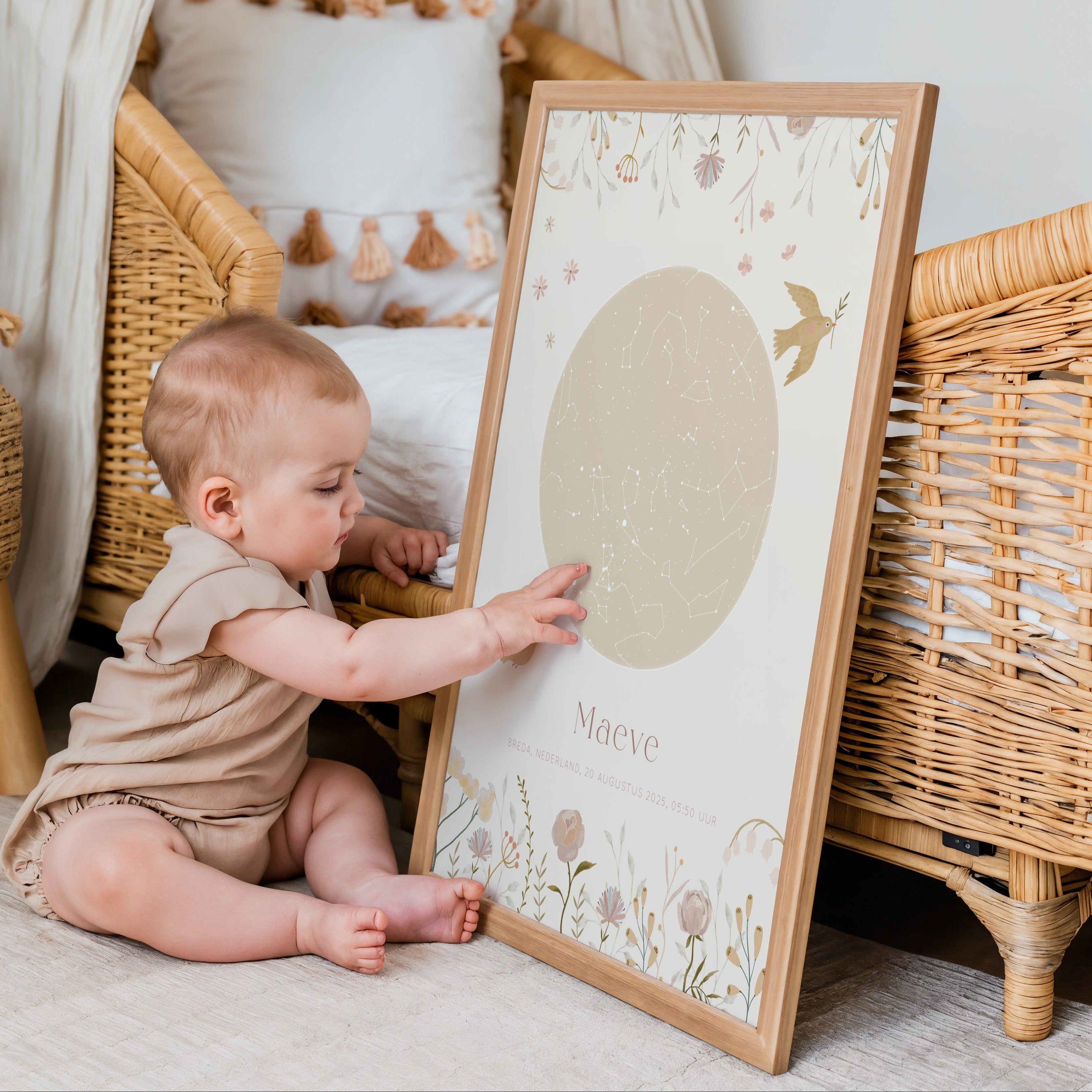 Van sterrenhemel- tot geboorteposter. Elk ontwerp vertelt een persoonlijk verhaal, speciaal voor jullie kindje.